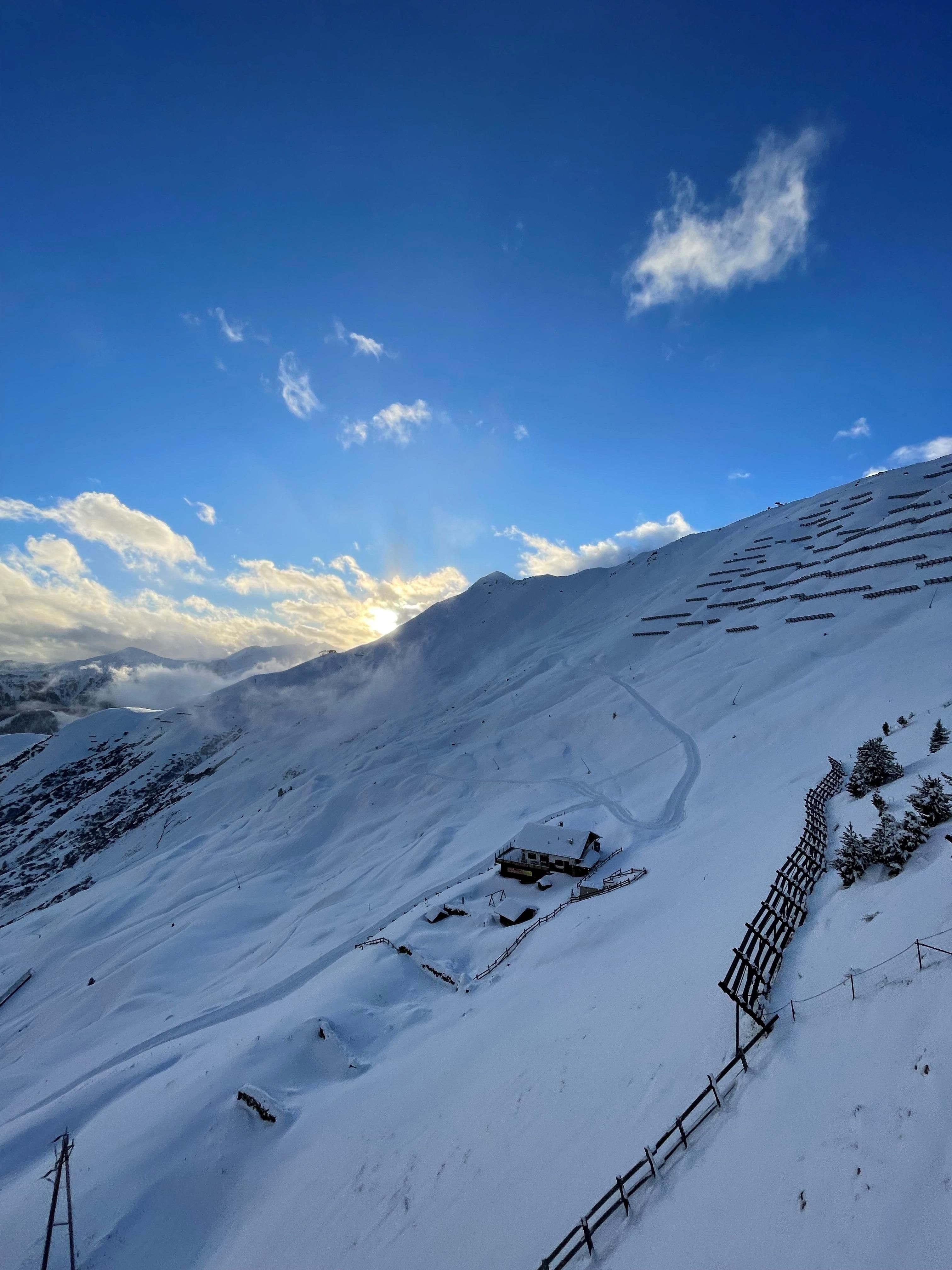 Snímky lanovky byly pořízeny na lanovce Nachtweidebahn, odkud je také vidět slavný Idalp.