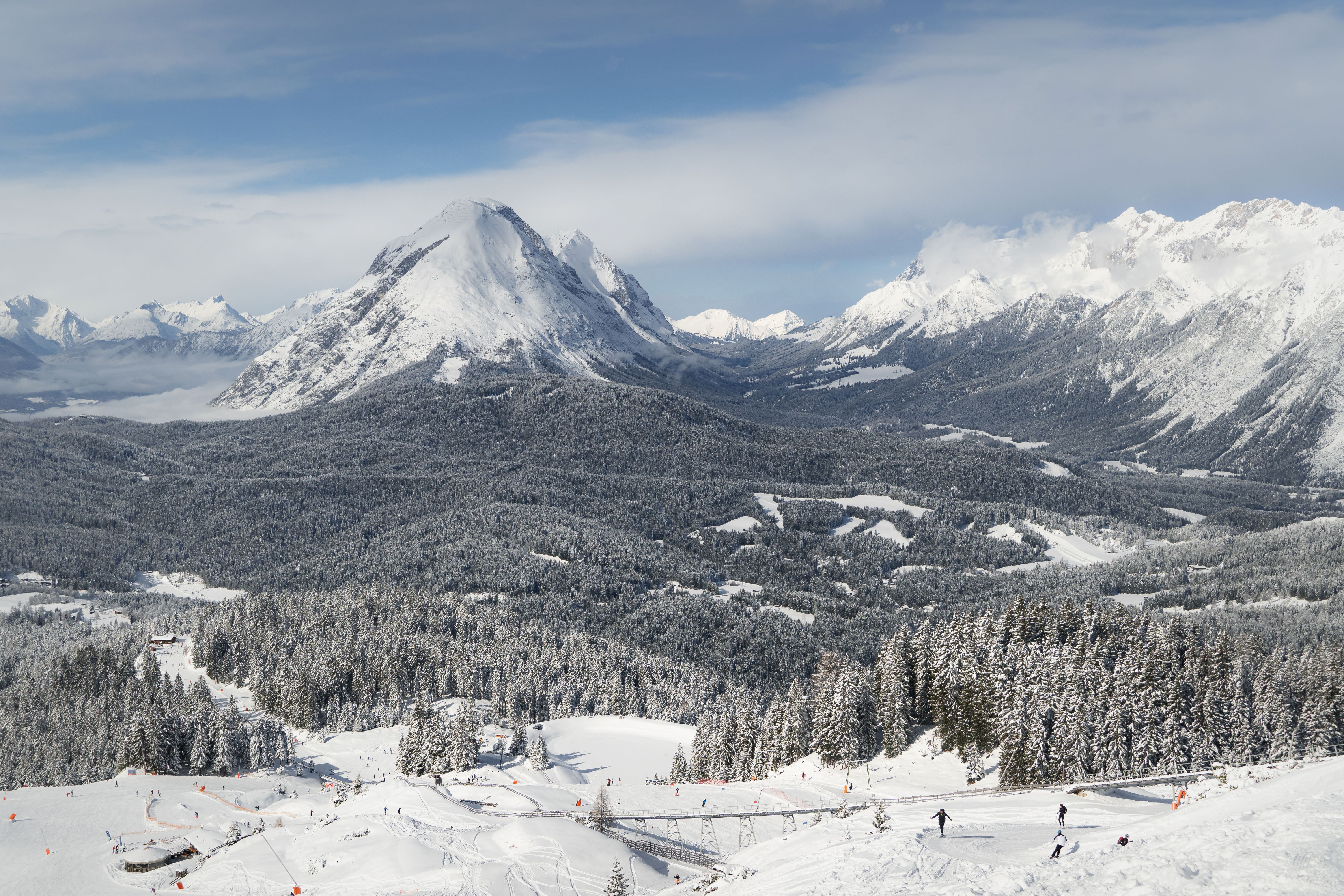 The ski tour to the Birgitzköpfl impresses with its varied route with gentle ascents and wide downhill options, offering ideal conditions for beginners as well as leisurely ski tourers. The magnificent panoramic views of the Stubai Alps and the cozy atmosphere of the Birgitzer Alm are particularly impressive.