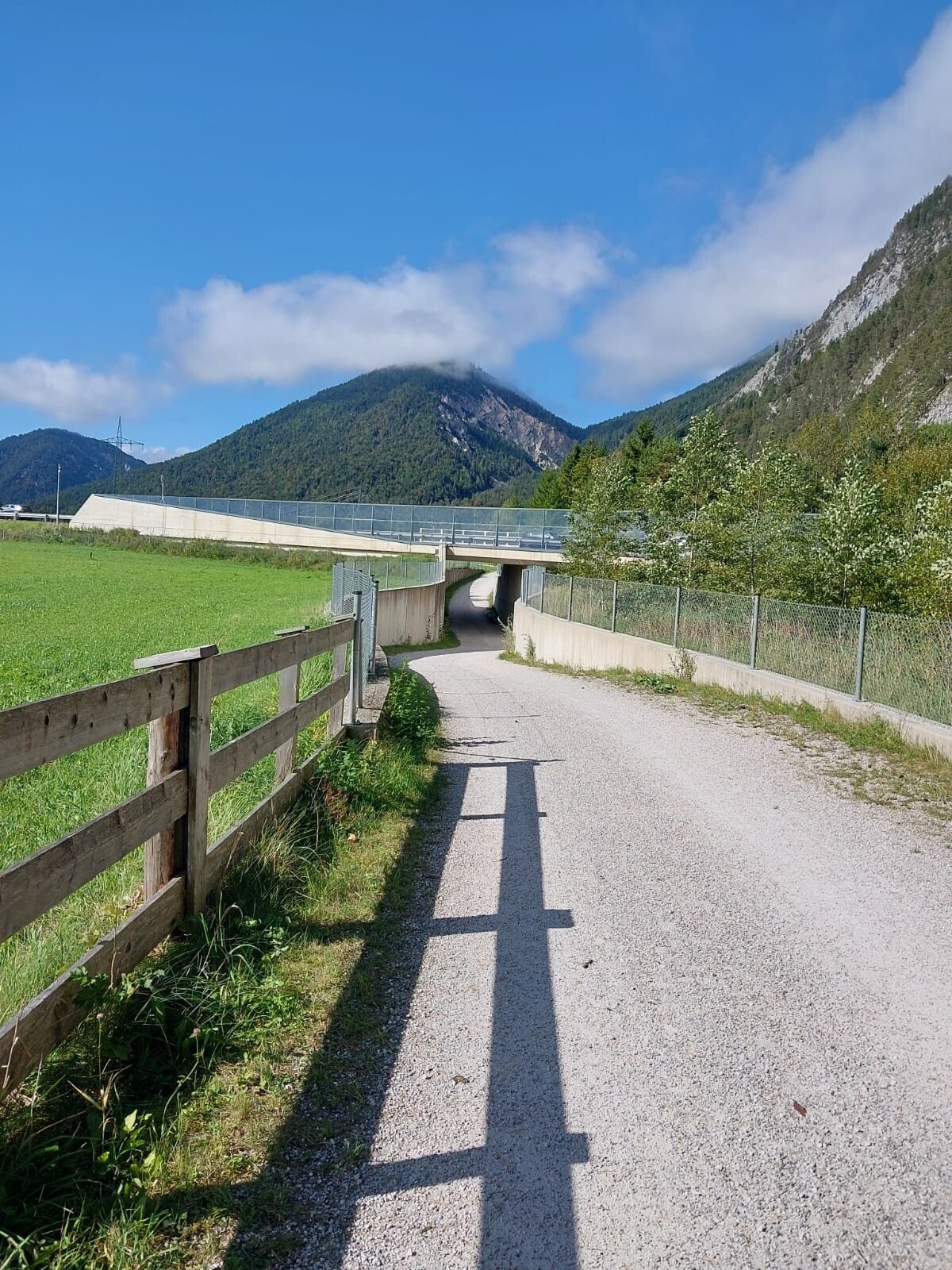 Na konci prvního úseku štěrkové cesty odbočte krátce na asfaltovou cestu a pokračujte po ní až k malému mostu. Za mostem se vrátíte na štěrkovou cestu, která vede směrem na Gießenbach. Odtud vás dobře udržovaná štěrková cesta povede podél vody téměř až na konec túry. Krásu náhorní plošiny si zde můžete obzvlášť dobře vychutnat. Občas se otočte a vnímejte přítomnost údolí a vrcholůKarwendelu, které vás obklopují. Tato cesta nebývá příliš frekventovaná, takže si můžete užít mnoho klidných chvil.
