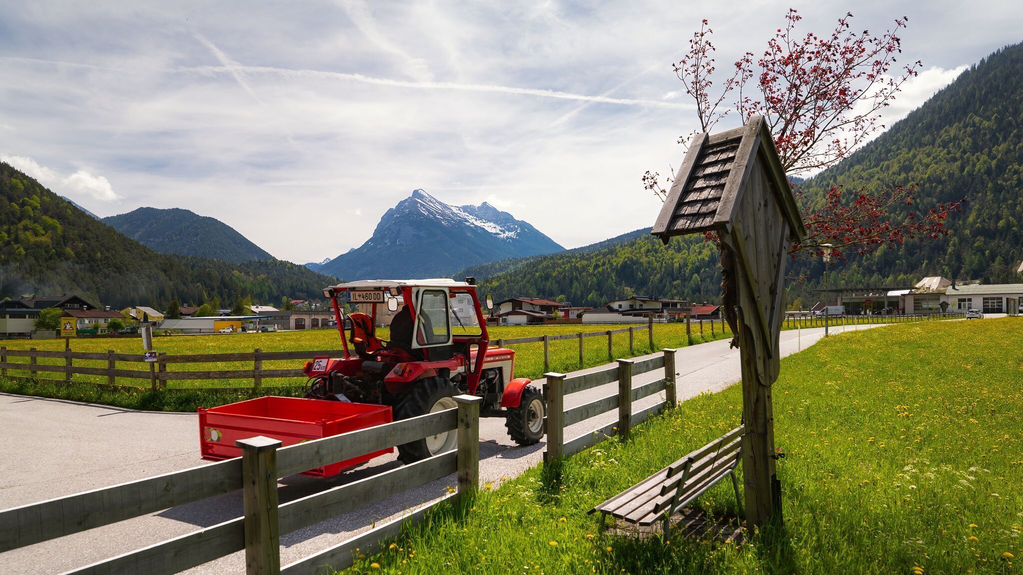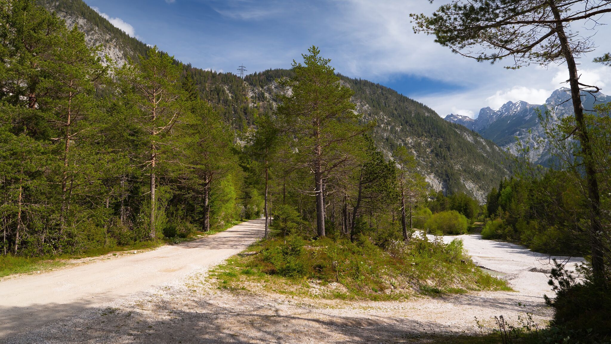 Snadná, bezbariérová túra ze Scharnitz podél potoka Gießenbach.