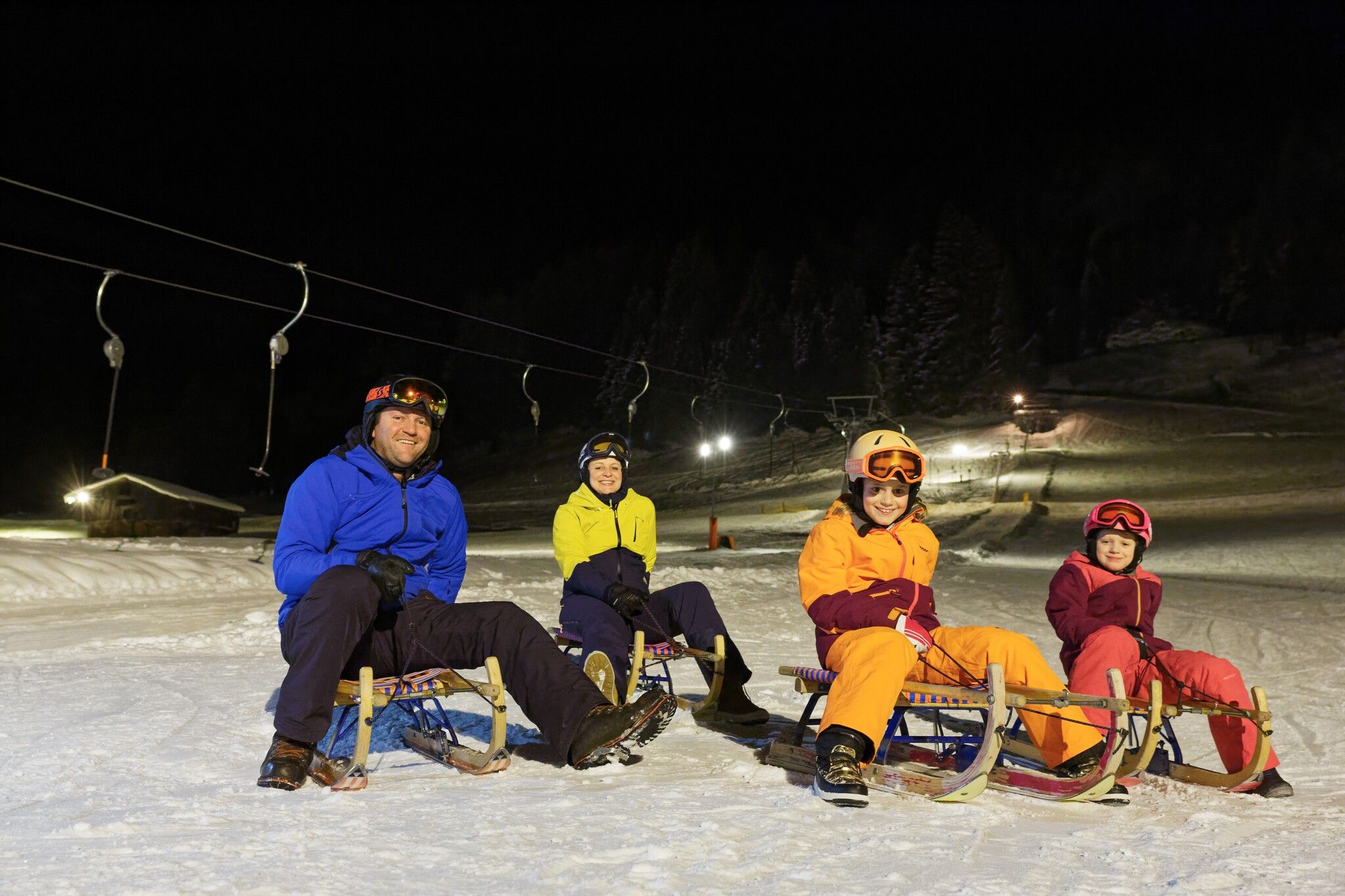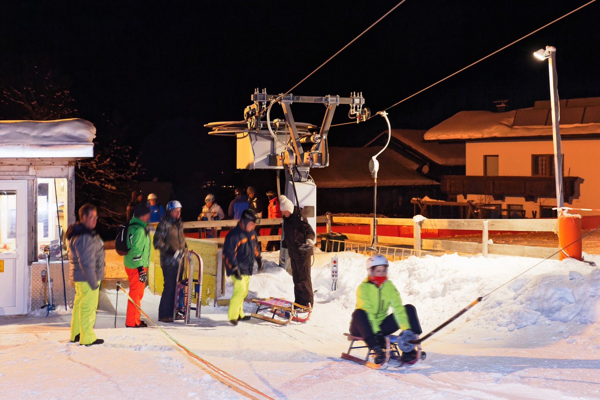 Sáňkařská zábava s osvětlením. Na Roggenbodenu se sjíždí na speciálně vyvinutých sáňkách. Konstrukce háku umožňuje snadný a pohodlný výstup pomocí vleku.