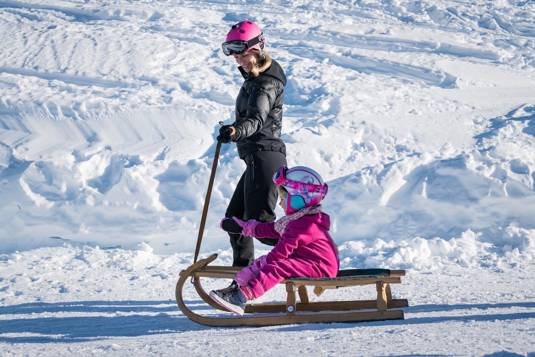 Sáňkařské dráhy vhodné pro rodiny mají méně prudký sklon a menší počet ostrých zatáček, takže jsou technicky nenáročné, a proto je zvládnou i děti, které chtějí sáňkovat samy. Pokud se na start sáňkařské dráhy přesto nelze dostat vlekem, pak je výstup poměrně krátký - maximálně do jedné hodiny chůze. Na startu je obvykle útulná horská chata, kde se můžete zastavit na občerstvení, protože při pěším výstupu člověk vyhládne. V těchto sáňkařských chatách se můžete nejen zahřát a posilnit, ale také usušit mokré oblečení, než se vydáte dolů do údolí po dráze.