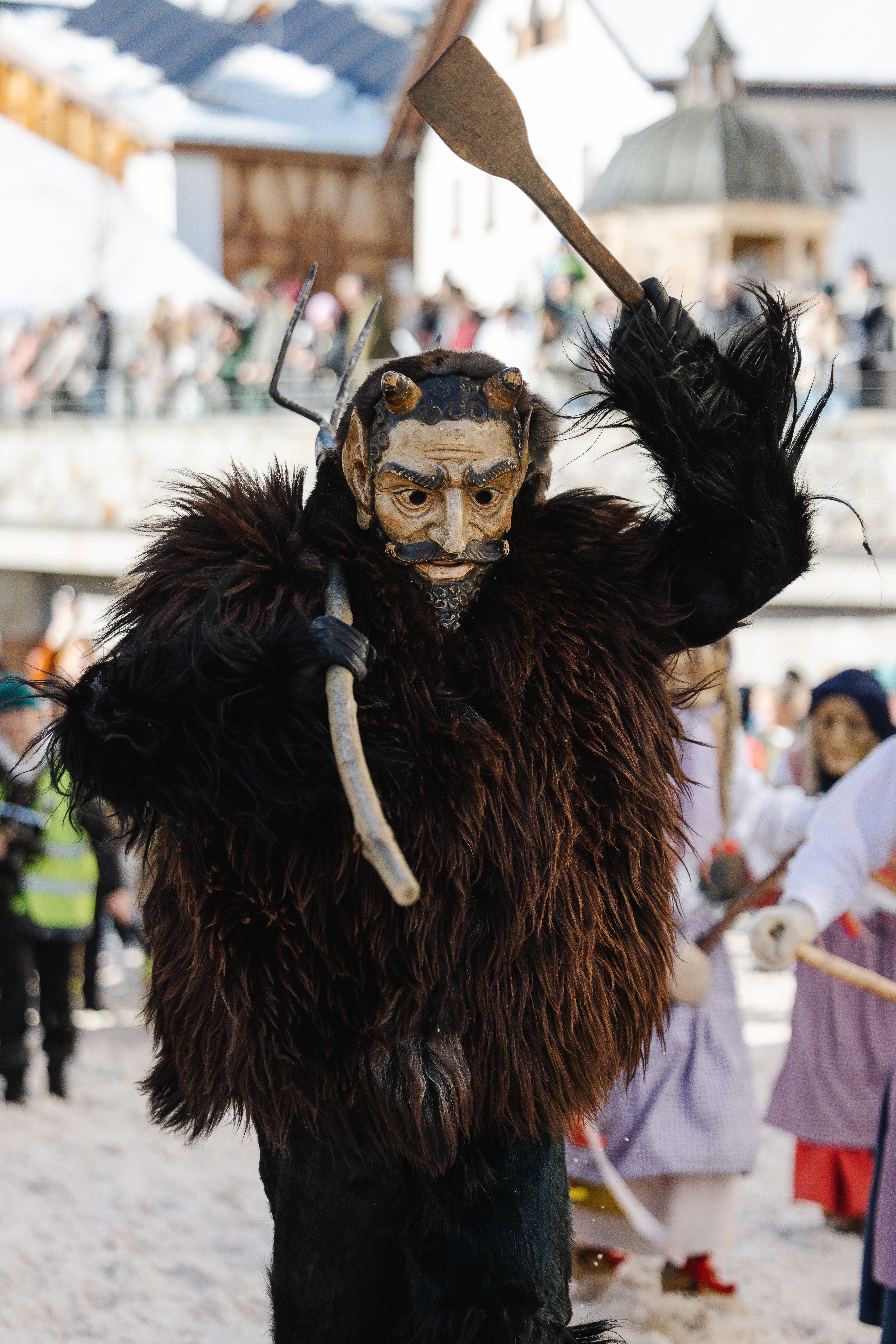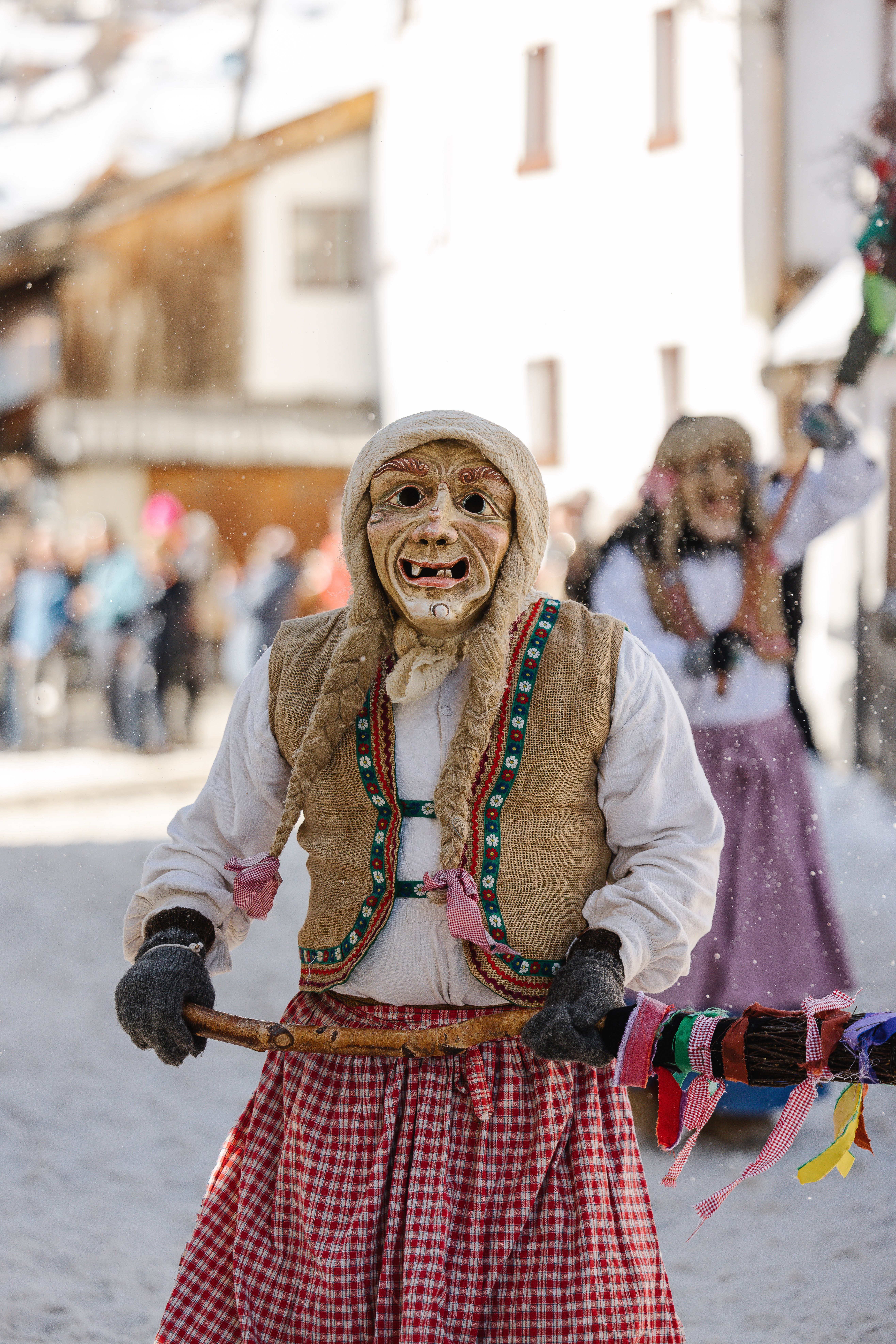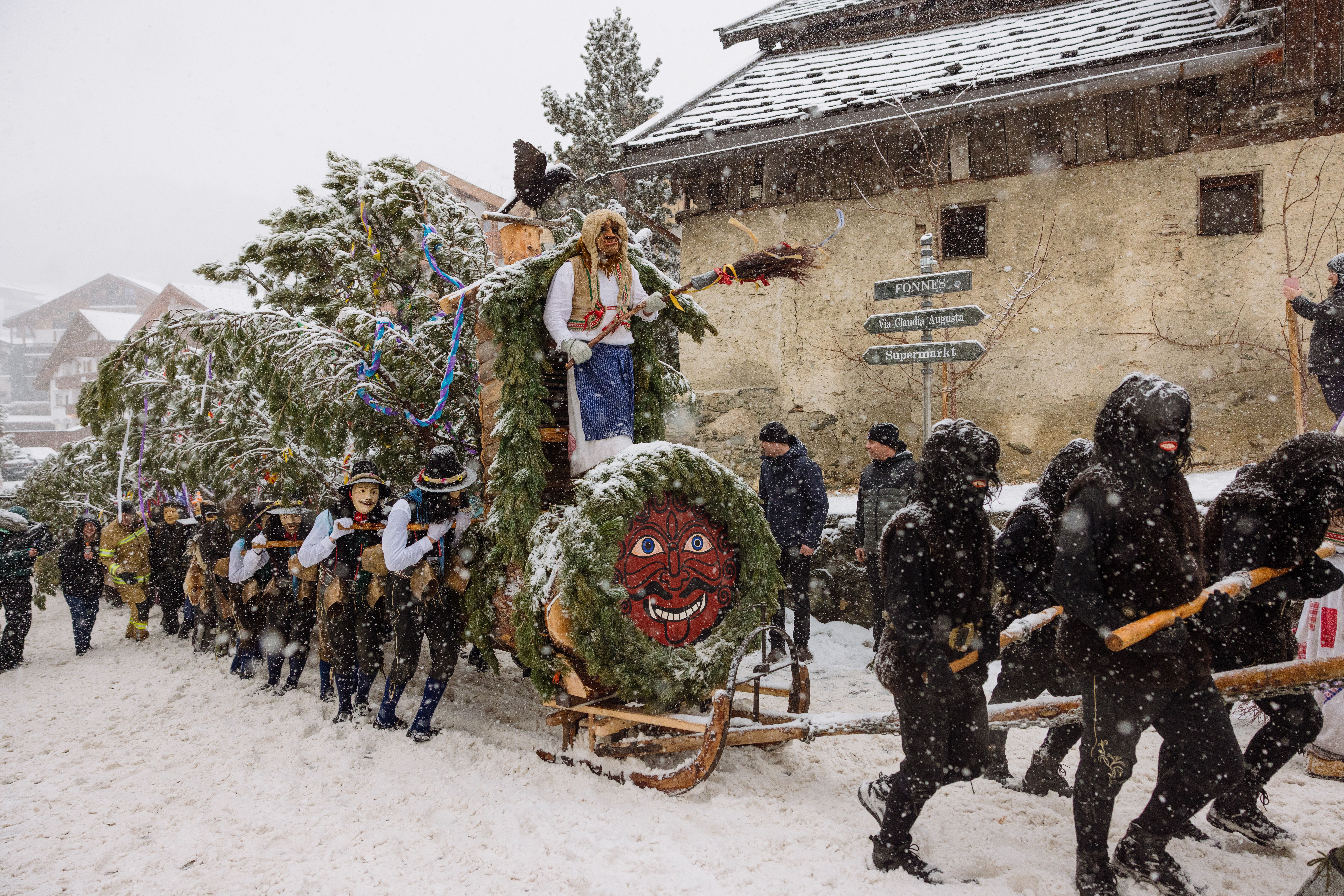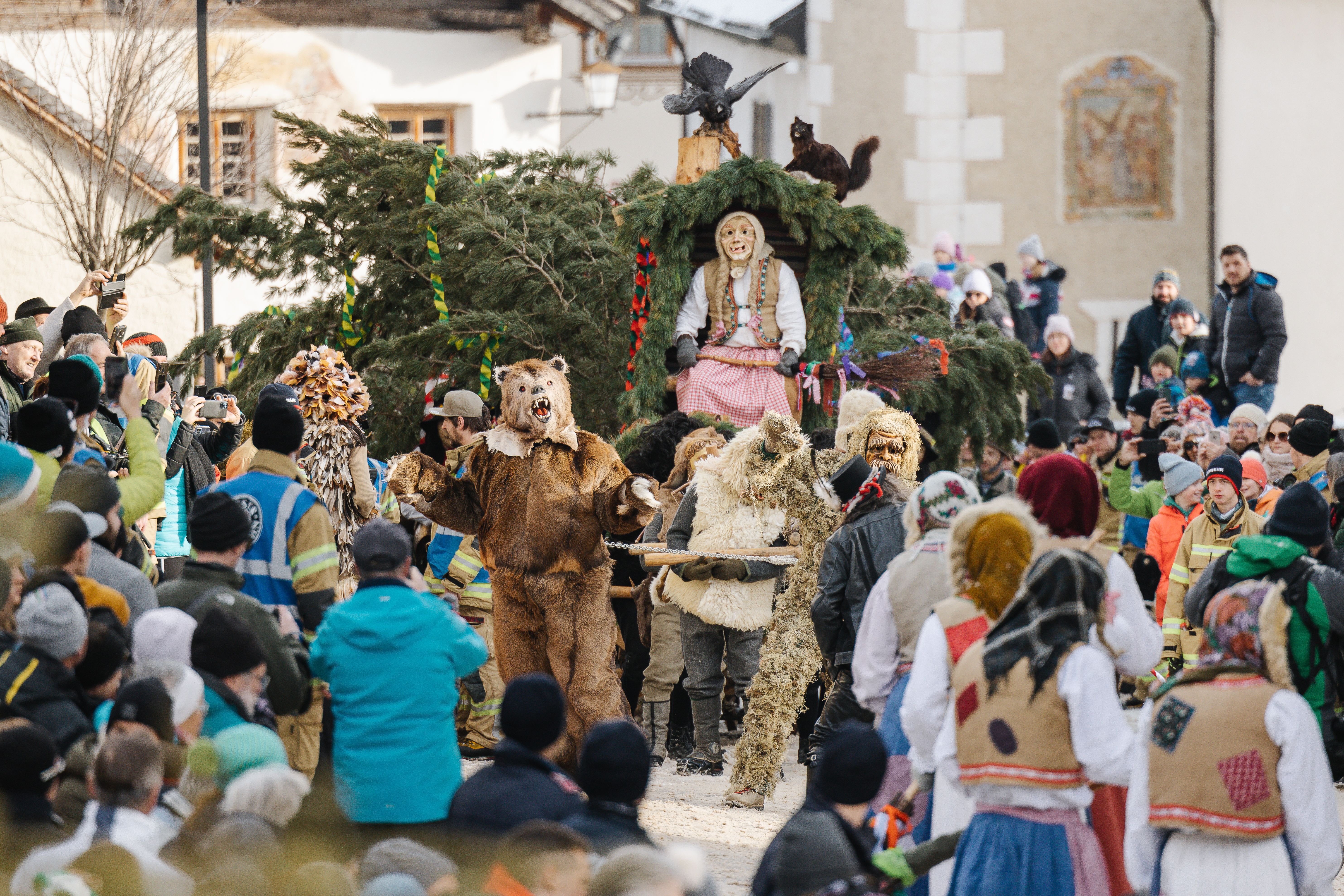Cesta vesnicí je jedinou symbolickou zkouškou síly. Někteří se přetahují o přicházející jaro, zatímco čerti a čarodějnice dělají vše pro to, aby jim zabránili v cestě dál. Je to poutavý zápas tam a zpět, který nakonec vyvrcholí na návsi. Právě zde se na konci dne draží mohutná kamenná borovice. To přináší vzrušující dražební války a vítaný výtěžek, který je určen ve prospěch vesnické komunity.