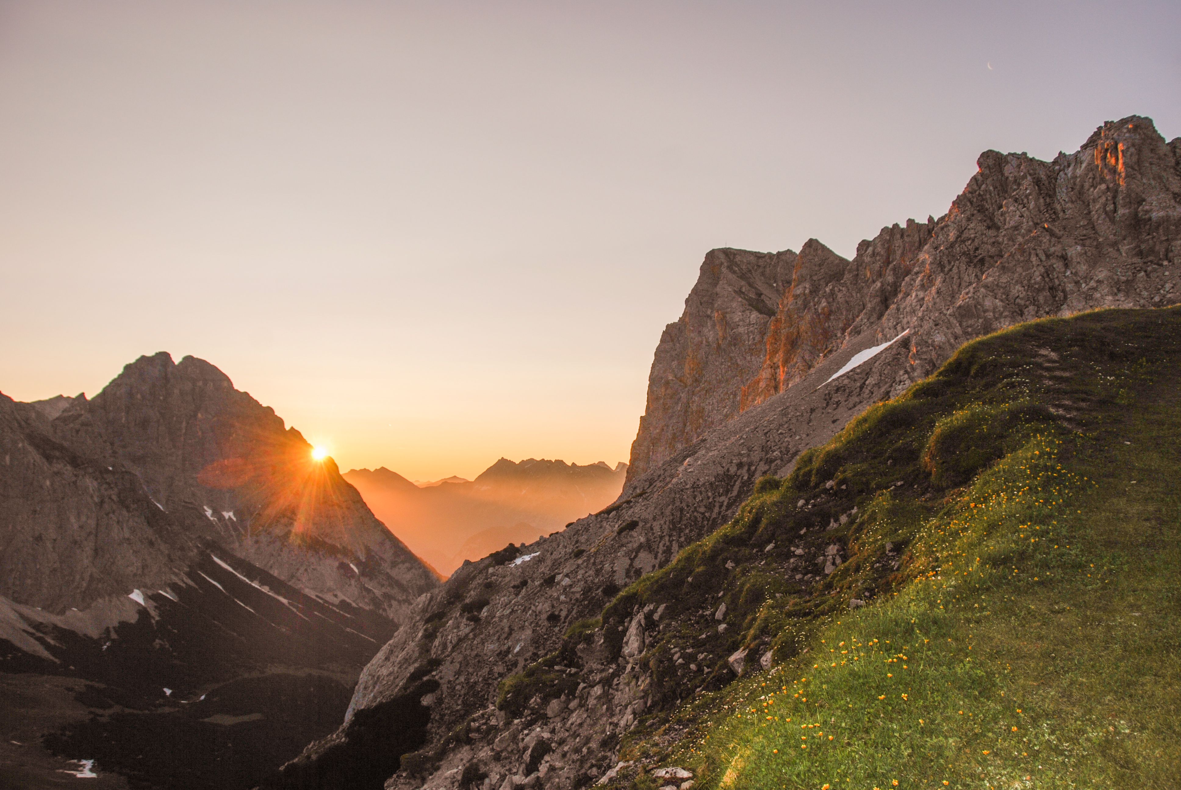 Stát na vrcholu při východu slunce je pravděpodobně jedním z nejkrásnějších zážitků, které můžete v tyrolských horách zažít. Zatímco dole v údolích je ještě tma, na ranní obloze se pomalu objevují první barvy. O chvíli později to vypadá, jako by někdo oblohu pomaloval oranžovými a růžovými zvýrazňovači. Z mlžné polévky na obzoru se pomalu vynořuje rudá ohnivá koule. Na nejvyšších vrcholcích všude kolem jsou nesměle vidět první sluneční paprsky. Konečně ucítíte na tváři první sluneční paprsky - začíná být teplo. Kvůli tomu se vyplatí vstávat brzy!