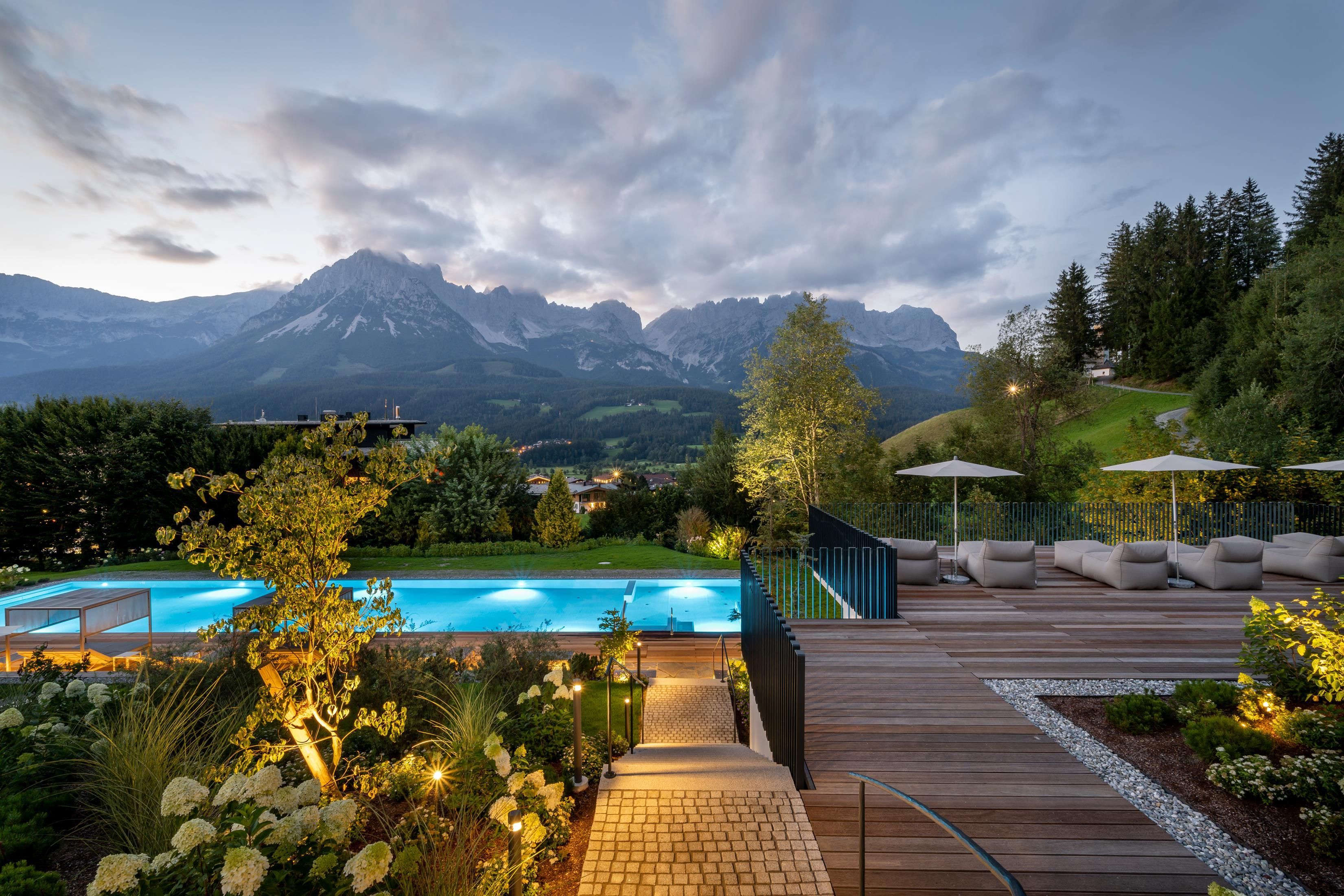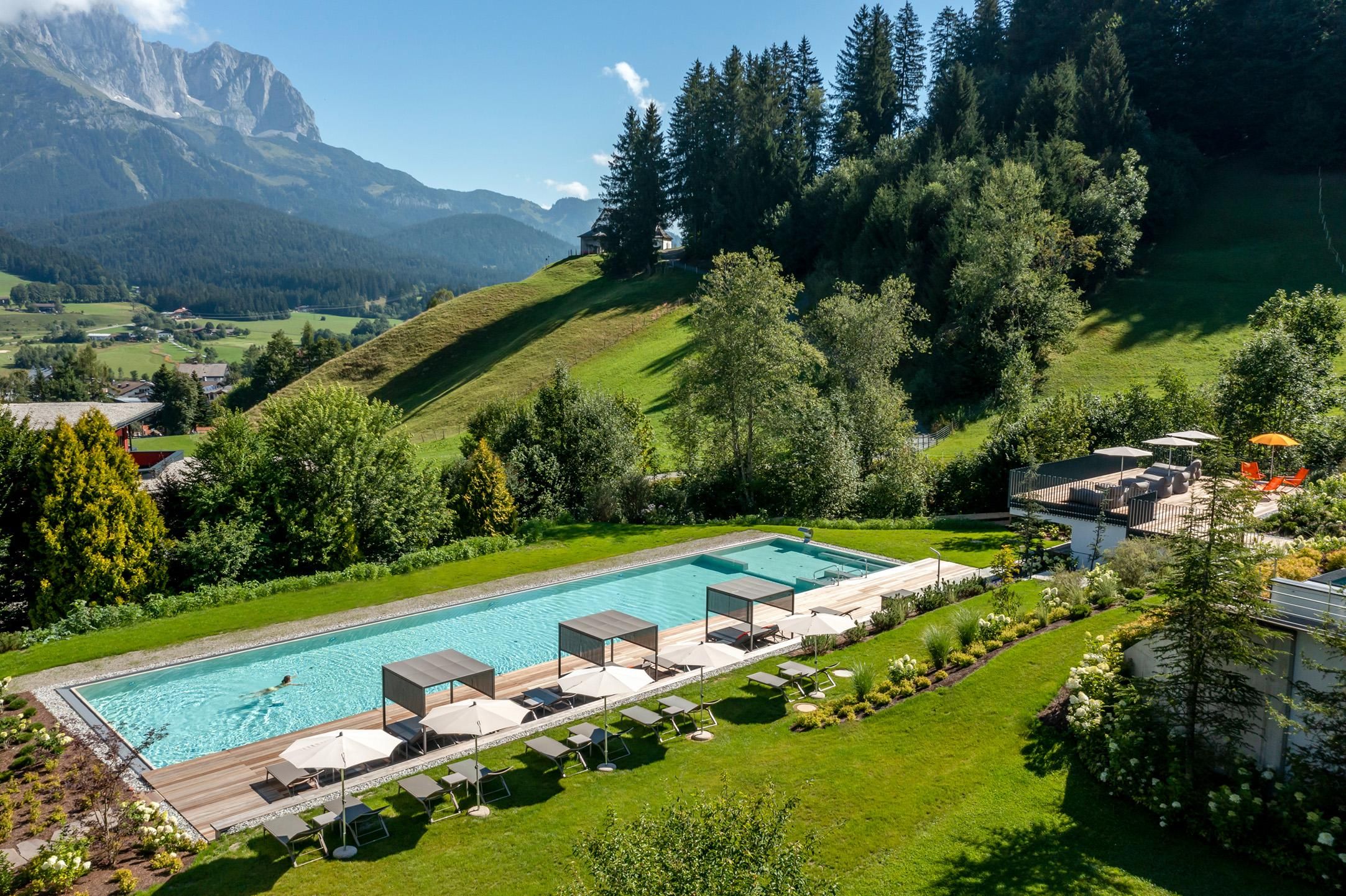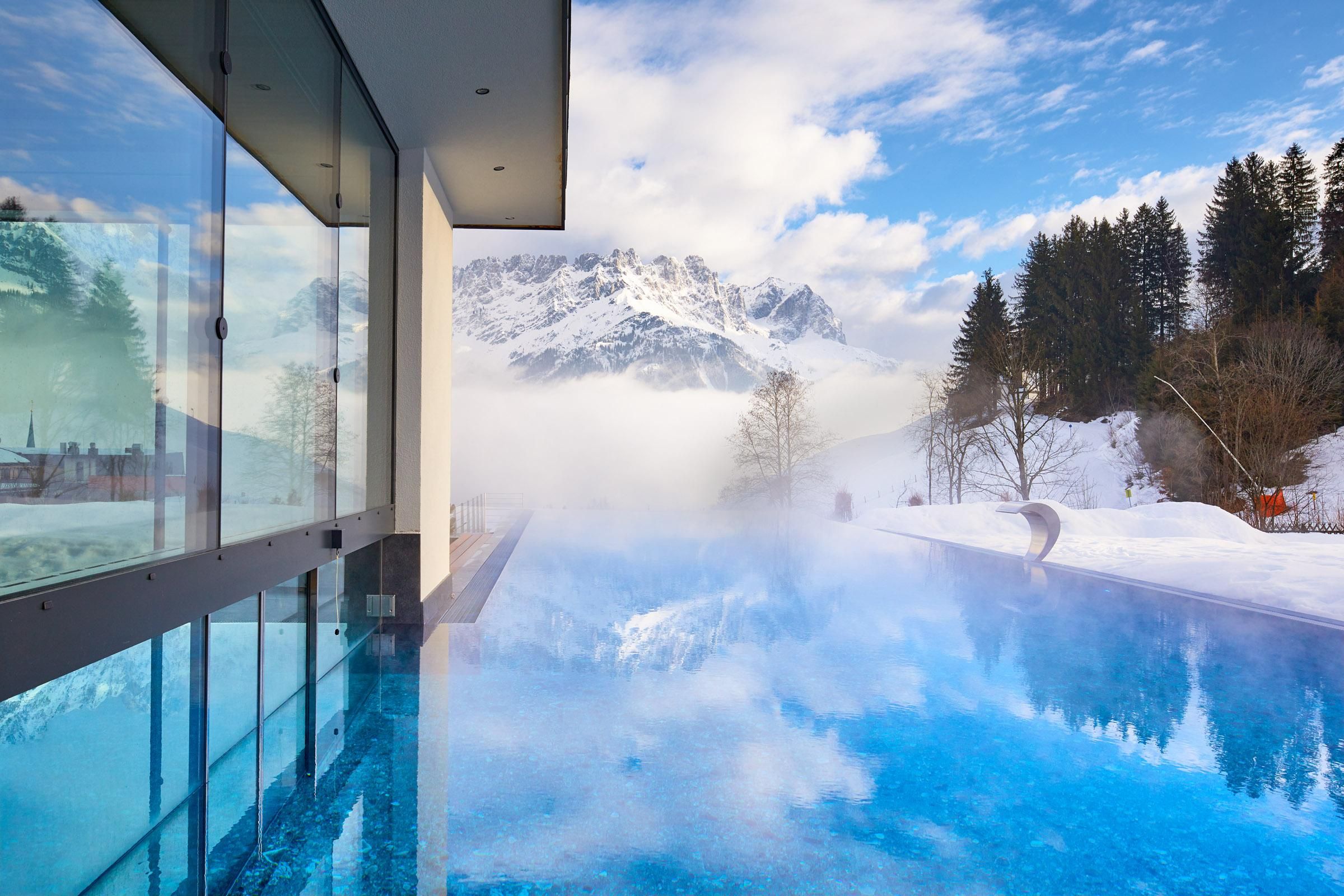 Místo, které si zamilujete. Rodina Windischových provozuje tento prostorný rekreační dům na úpatí pohoří Wilder Kaiser v Tyrolsku s velkou péčí a vřelostí. Hlavní budova s prostornými dvoulůžkovými pokoji a elegantními, luxusními apartmány nabízí každému hostu individuální ubytování. dovolená všemi smyslyGurmánská restaurace v hotelu DER BÄR - oceněná cenou Falstaff - nabízí regionální a mezinárodní výtvory v obvyklé špičkové kvalitě. Jako doma se budete cítit také v moderním hotelovém baru, kde jsou kvalitní vína a vybrané nápoje ideálním završením večera. Medvědí už to nebude. Rozkoš na vysoké úrovniDvacetimetrový nekonečný bazén, celoročně vyhřívaný na 31 °C, slibuje neomezenou relaxaci na pozadí snů - je však "jen" jednou z mnoha zajímavostí! Celý lázeňský dům s krytým bazénem, saunou a relaxační místností s nádhernými panoramatickými okny vám vyrazí dech. Ať už uvnitř nebo venku - vždy budete odměněni jedinečným výhledem na Wilder Kaiser. V pokojích a apartmánech, které umně kombinují alpský šarm s moderní elegancí, je majestátní hora takříkajíc také součástí interiéru. A nádherná příroda Kitzbühelských Alp, tato císařská krajina, je skvělým místem, kde můžete načerpat energii v každém ročním období. V létě mají golfisté na nedalekém golfovém hřišti Wilder Kaiser/Ellmau 30% slevu na green fee a v zimě mohou milovníci zimních sportů zažít novou dimenzi lyžování na 279 kilometrech sjezdovek ve SkiWelt Wilder Kaiser/Brixental. Pro ty nejmenší máme k dispozici prostorný a světlý miniklub hned vedle zahrady a ti o něco starší jsou mezi sebou v chill roomu. Zažijte to prosím na vlastní kůži. Těšíme se na vás v naší obvyklé vřelé a přátelské atmosféře.