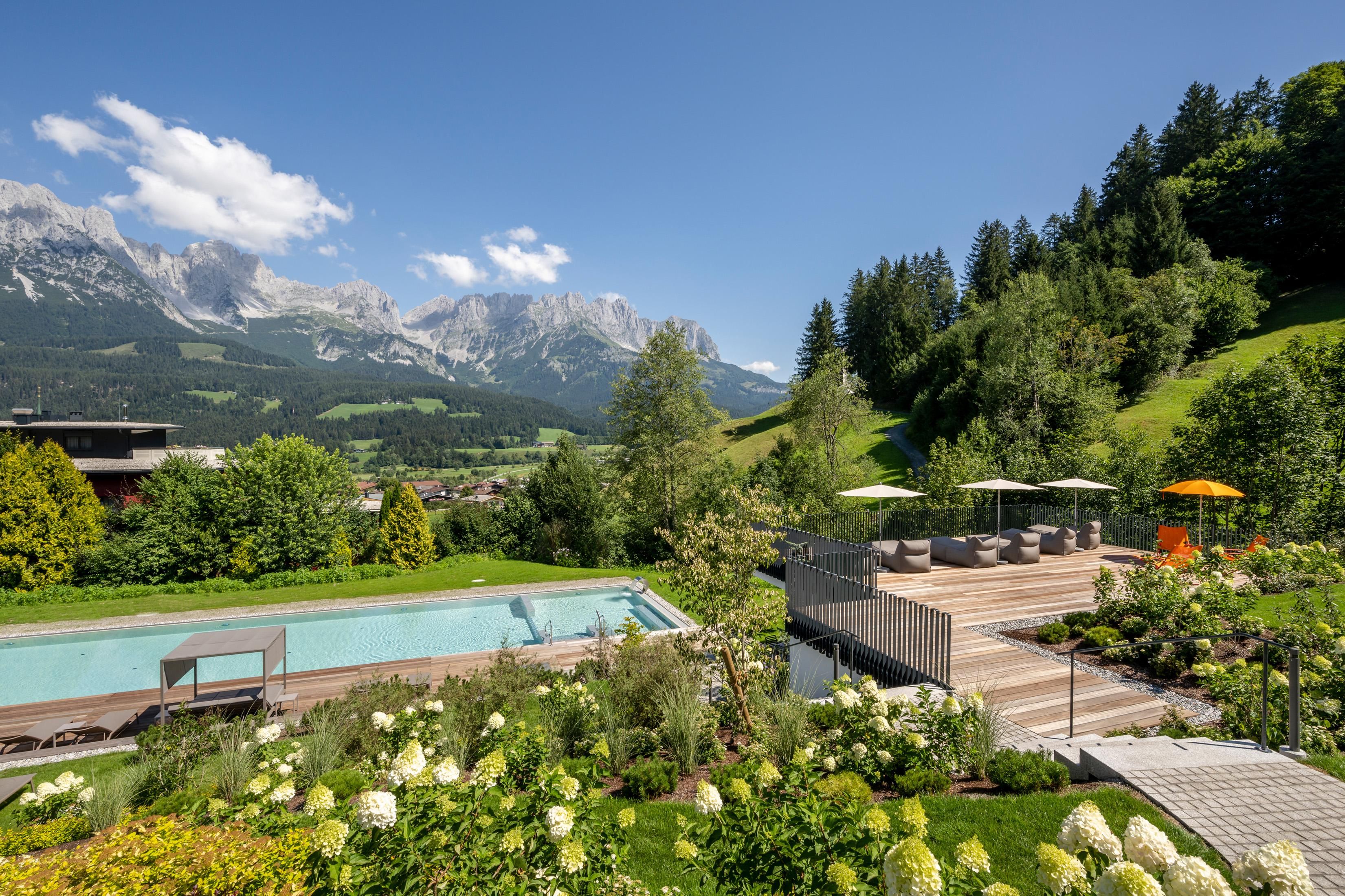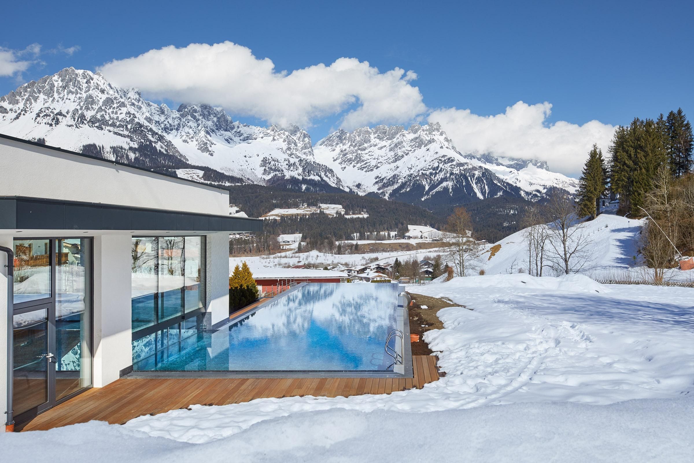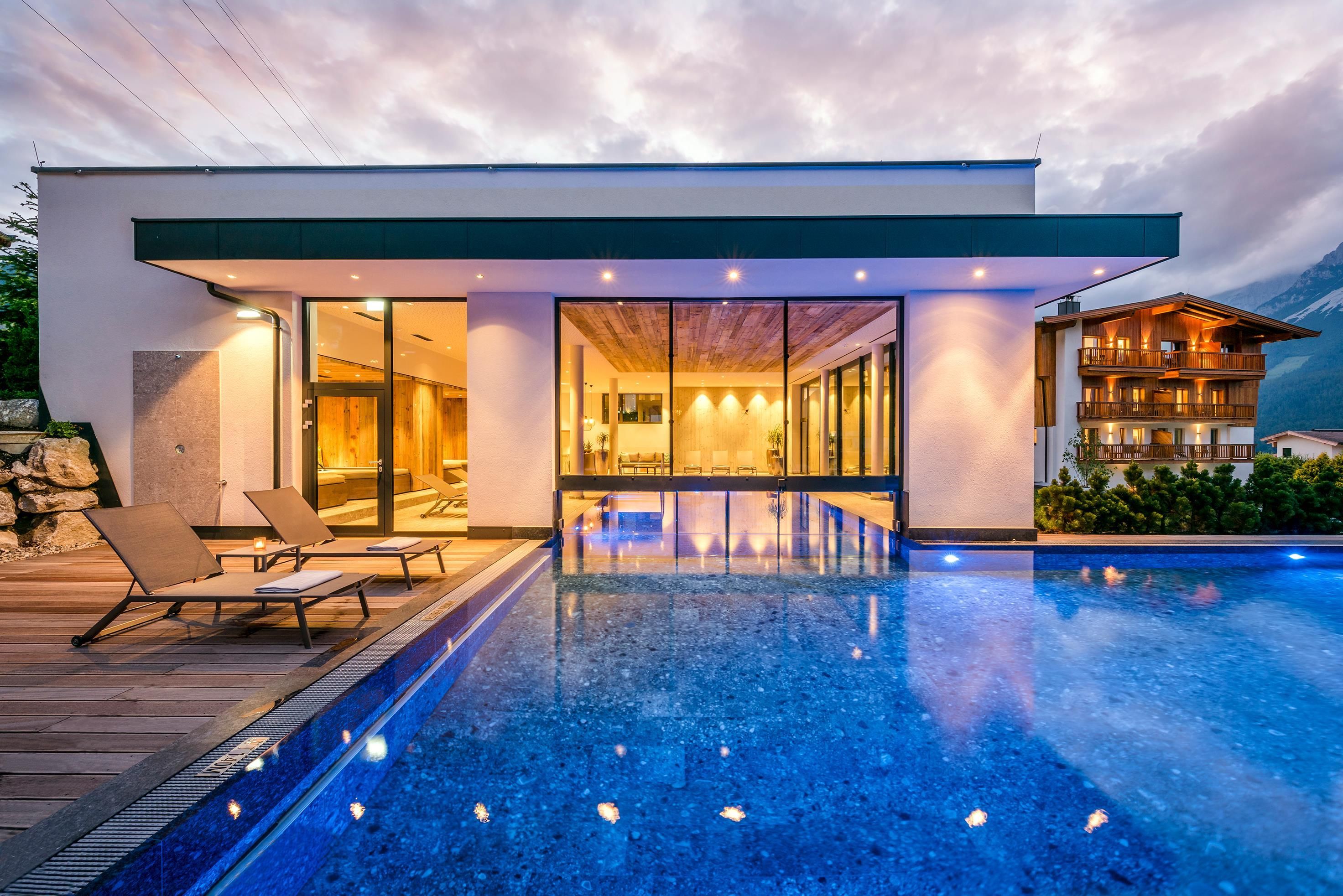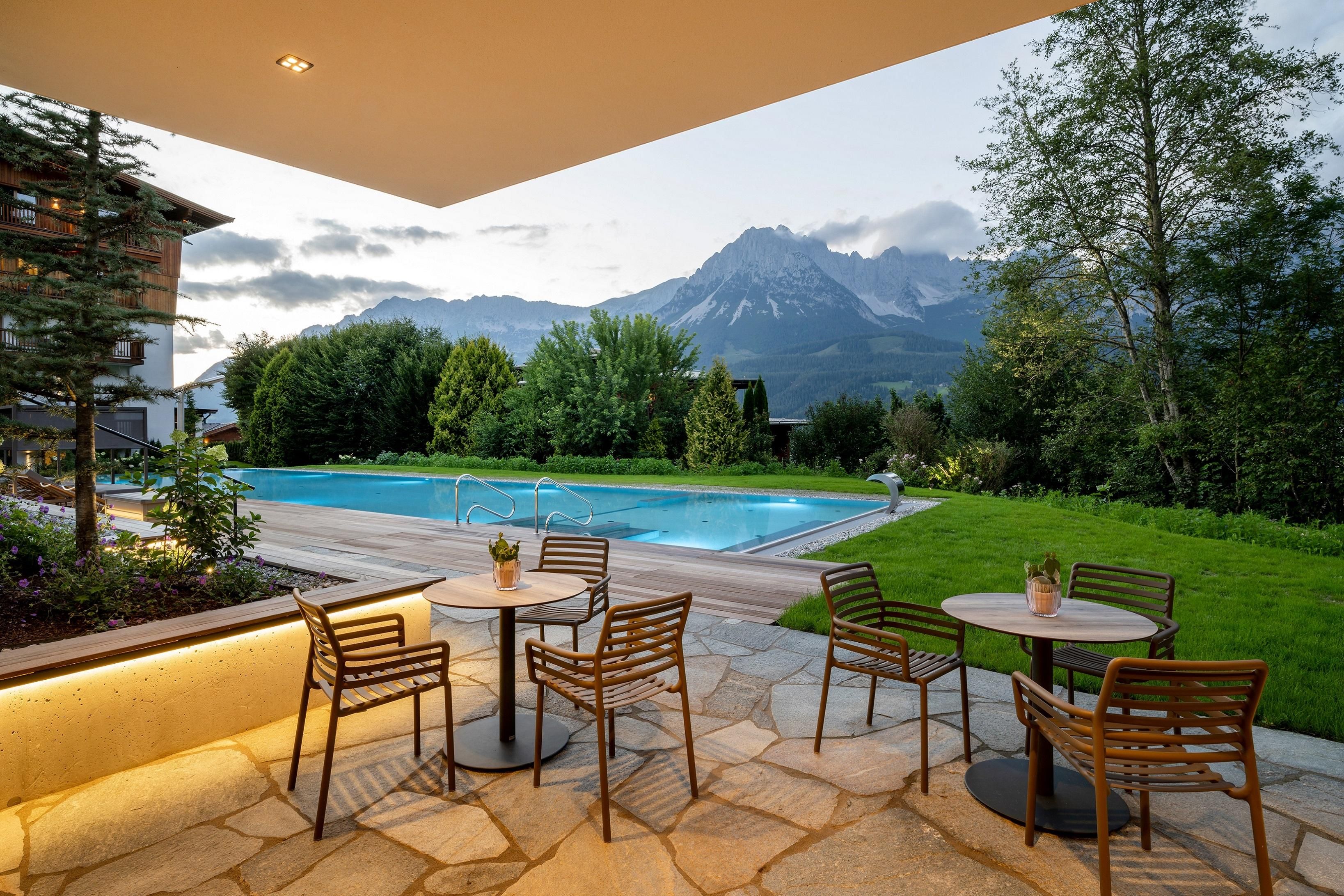 Místo, které si zamilujete. Rodina Windischových provozuje tento prostorný rekreační dům na úpatí pohoří Wilder Kaiser v Tyrolsku s velkou péčí a vřelostí. Hlavní budova s prostornými dvoulůžkovými pokoji a elegantními, luxusními apartmány nabízí každému hostu individuální ubytování. dovolená všemi smyslyGurmánská restaurace v hotelu DER BÄR - oceněná cenou Falstaff - nabízí regionální a mezinárodní výtvory v obvyklé špičkové kvalitě. Jako doma se budete cítit také v moderním hotelovém baru, kde jsou kvalitní vína a vybrané nápoje ideálním završením večera. Medvědí už to nebude. Rozkoš na vysoké úrovniDvacetimetrový nekonečný bazén, celoročně vyhřívaný na 31 °C, slibuje neomezenou relaxaci na pozadí snů - je však "jen" jednou z mnoha zajímavostí! Celý lázeňský dům s krytým bazénem, saunou a relaxační místností s nádhernými panoramatickými okny vám vyrazí dech. Ať už uvnitř nebo venku - vždy budete odměněni jedinečným výhledem na Wilder Kaiser. V pokojích a apartmánech, které umně kombinují alpský šarm s moderní elegancí, je majestátní hora takříkajíc také součástí interiéru. A nádherná příroda Kitzbühelských Alp, tato císařská krajina, je skvělým místem, kde můžete načerpat energii v každém ročním období. V létě mají golfisté na nedalekém golfovém hřišti Wilder Kaiser/Ellmau 30% slevu na green fee a v zimě mohou milovníci zimních sportů zažít novou dimenzi lyžování na 279 kilometrech sjezdovek ve SkiWelt Wilder Kaiser/Brixental. Pro ty nejmenší máme k dispozici prostorný a světlý miniklub hned vedle zahrady a ti o něco starší jsou mezi sebou v chill roomu. Zažijte to prosím na vlastní kůži. Těšíme se na vás v naší obvyklé vřelé a přátelské atmosféře.
